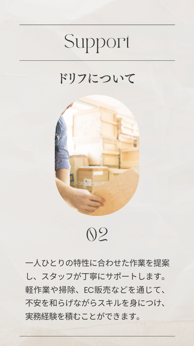 愛知県小牧市の障がい者就労継続支援A型事業所 ドリフです。小さな一歩、大きな未来。